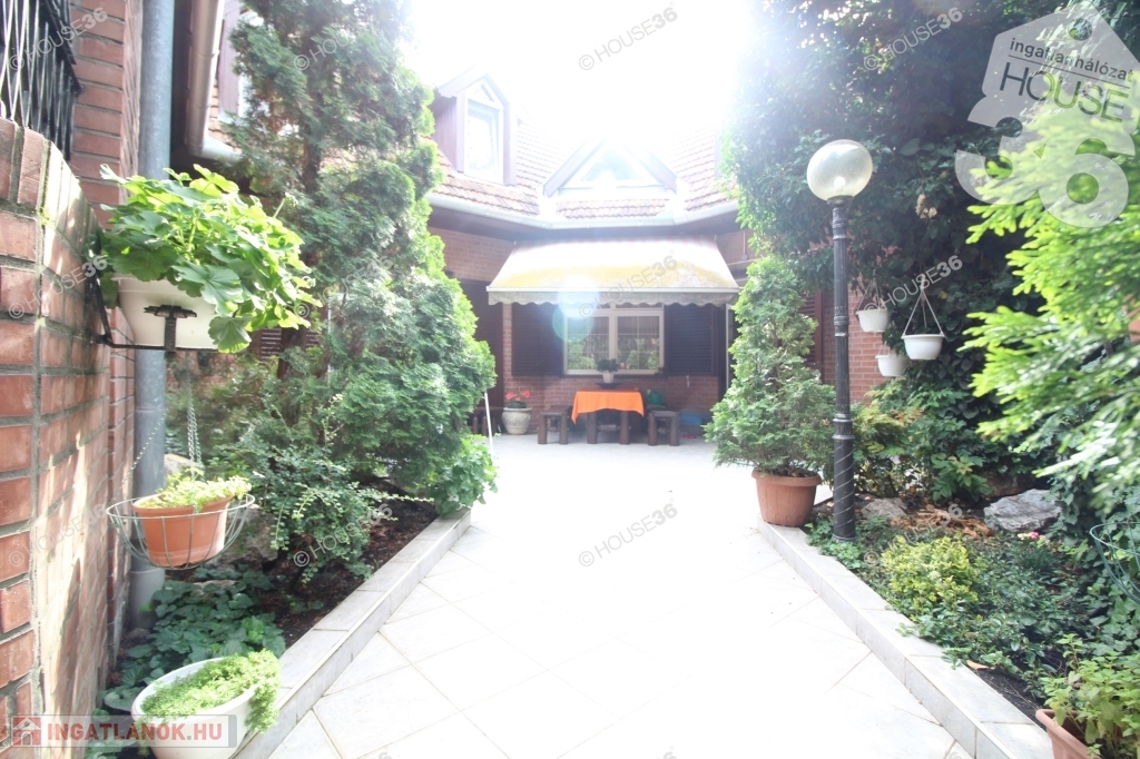 Eladó, felújított családi ház Kecskemét kertvárosi részén,parkos környezetben,csendes utcában a városközponthoz közel, 400 m2-es telken, 205 m2-es, dupla garázsos, nappali + 3 szobás, terasszal és hozzá tartozó üzlet helyiséggel, pincével.