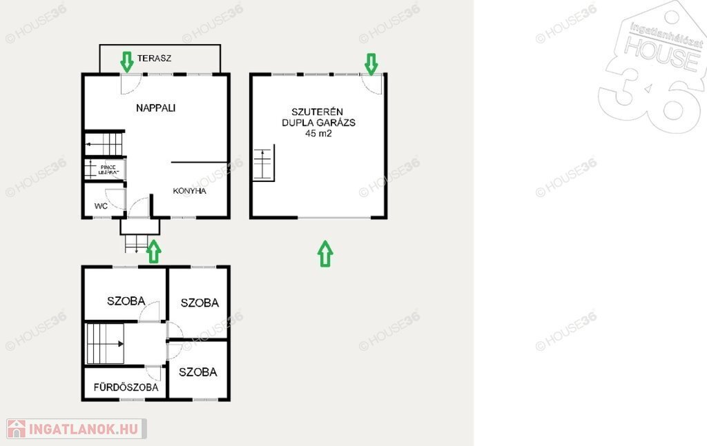 45 m2 dupla garázs, szuterén