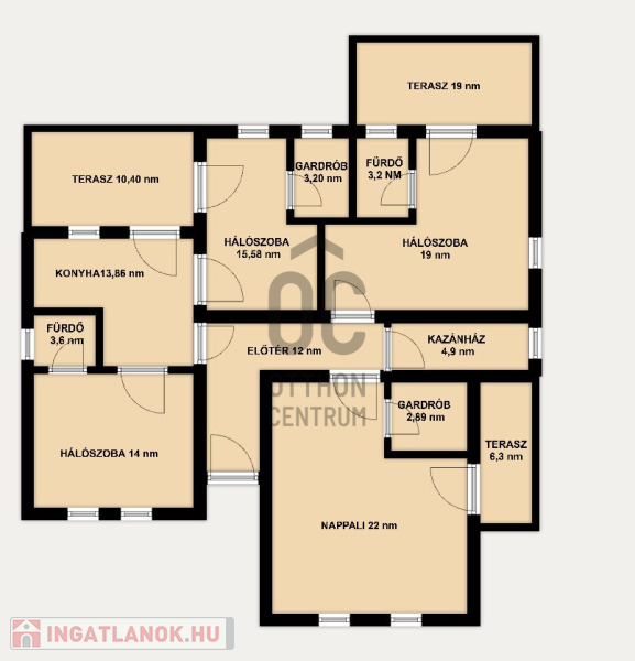 - 3 különálló, de akár egyben is használható lakóegység, mindegyikhez saját terasz tartozik.