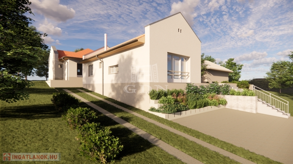 A ház örökpanorámás, csendes zöldövezetben található, mégis csak 15 perc autóval a belvárostól. A közcsatornázás 2027 eleji moratórium feloldásig fúrt kúttal és szikkasztóval megoldott, így a mindennapi használat biztosított. A képek látványtervek, az építkezés folytatása az új tulajdonos bevonásával történik.