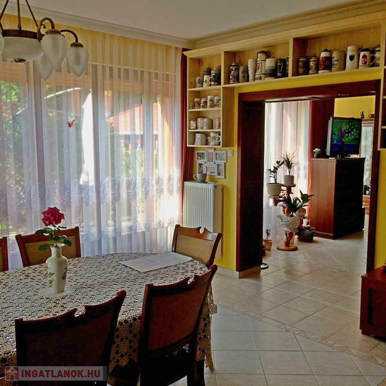 A családi ház 2 szintes, melyben két lakrész összenyitásával igényesen ki lett alakítva 6 szoba, nappali, konyha, étkező és egyéb helyiségek. A kertben épült egy hangulatos, teljesen felszerelt kerti veranda, amely az év bármely szakában használható családi, baráti összejövetelek alkalmával.
