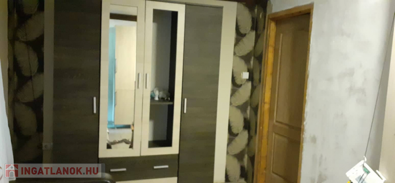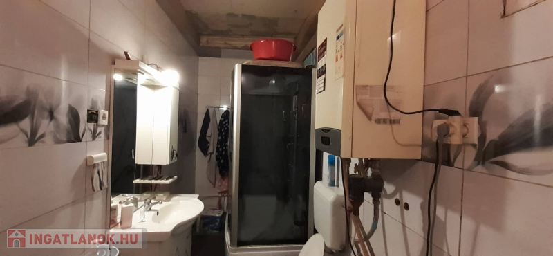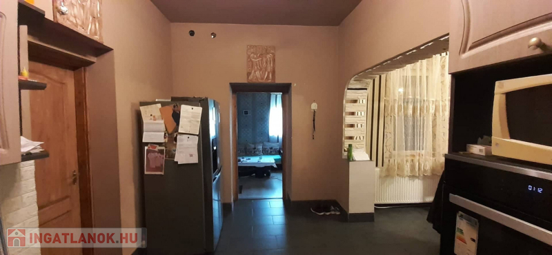 A hátsó lakrész( 49nm) egybe van építve a fő résszel, de teljesen külön bejárattal rendelkezik. Ott találunk egy hosszú folyosót, innen nyílik egy 18 nm-es konyha-nappali, és egy 14 nm-es szoba. A nappaliból jutunk a 4 nm-es fürdőszobába. A folyosóról nyílik az egész épület alatt húzódó pince. Ez a lakrész, bár laknak benne, de a fürdőn kívül még befejezésre vár.