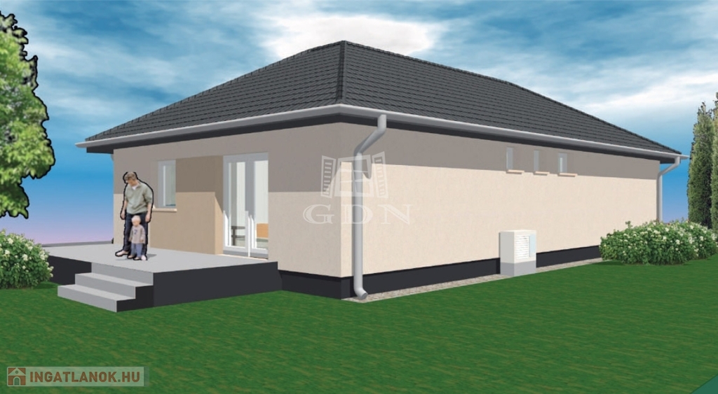 Kókán az Isaszegi utcában , 3079 m2-es 21 méter széles utcafronttal rendelkező telken, újonnan épülő nettó 93,42 m2 hasznos lakótérrel rendelkező, önálló családi ház eladó.