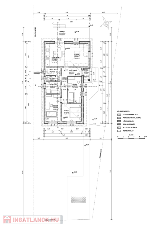 A tető héjazata antracit betoncserép lesz, a homlokzatok 15cm EPS, a padló 10cm Austrotherm AT-N100-as, a vízszintes födém 25cm ásványgyapot szigeteléssel lesznek ellátva.