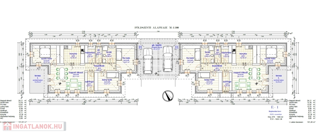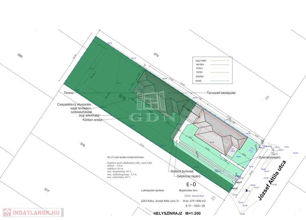 Kókán a József Attila utca 31. szám alatt, 1406 m2-es telkeken, újonnan épülő nettó 101,45 m2 nettó hasznos lakótérrel rendelkező, kulcsrakész ikerházfelek eladóak