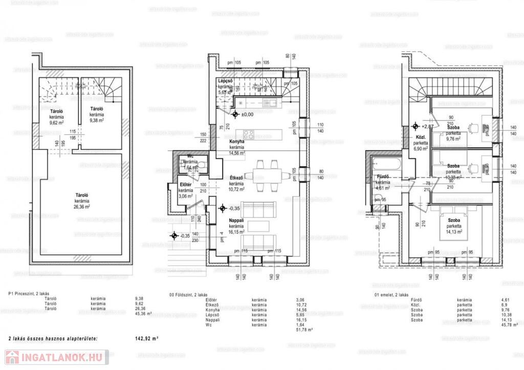• Pinceszint: mosókonyha + nagy tárolóhelyiségek