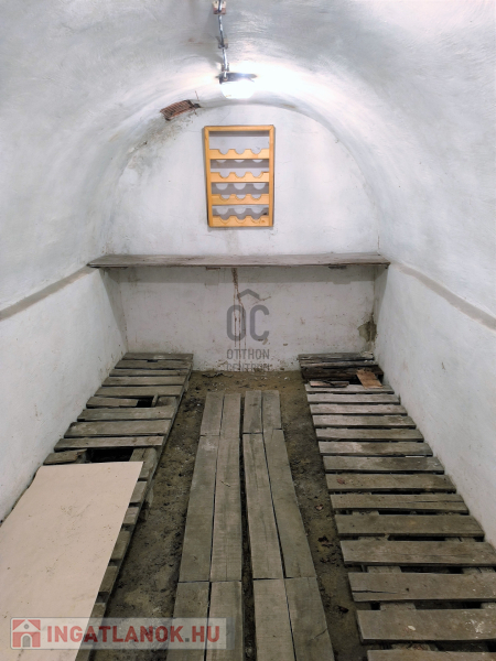 A szuterén szinten garázs, műhely, egyéb tároló helyiségek állnak még rendelkezésre, illetve innen lehet lemenni az épület alatt található borospincébe is.