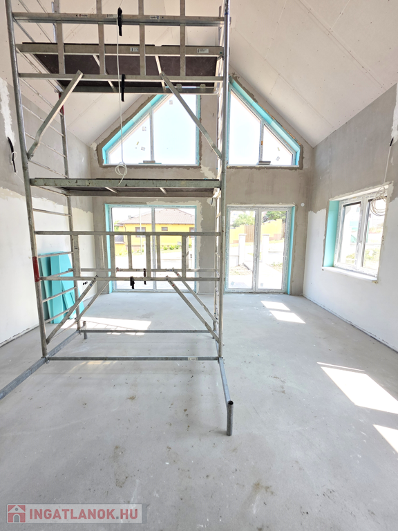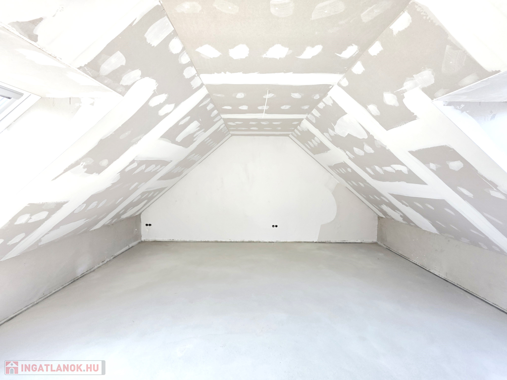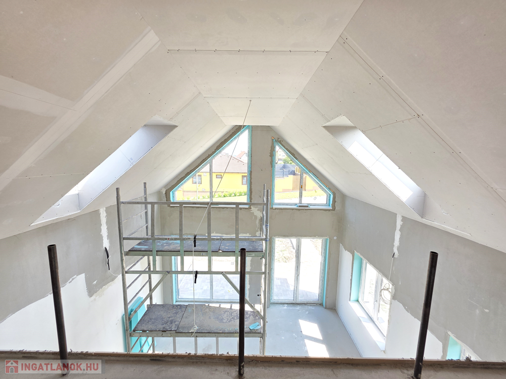 Az emeleten pedig egy nagyszoba és fürdőszoba található. A ház minden helyisége világos, napfényes. Az ingatlan falazata 44-es xtherm rapid okostégla hőszigetelő vakolattal. A nyílászárók 3 rétegű ablakok, elektromos redőnnyel és szúnyoghálóval ellátva.