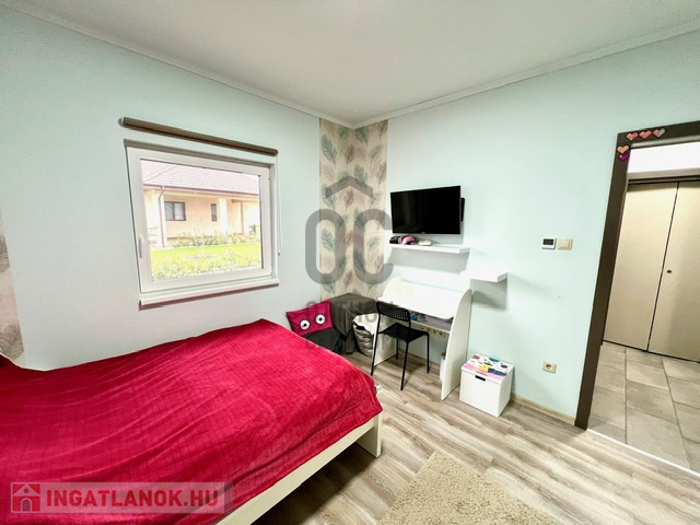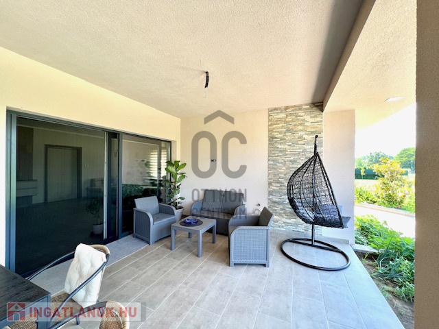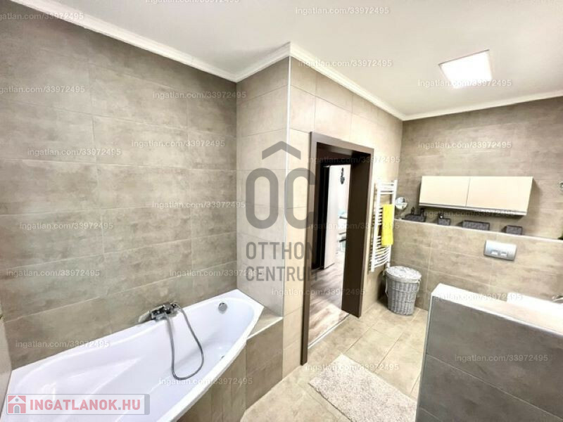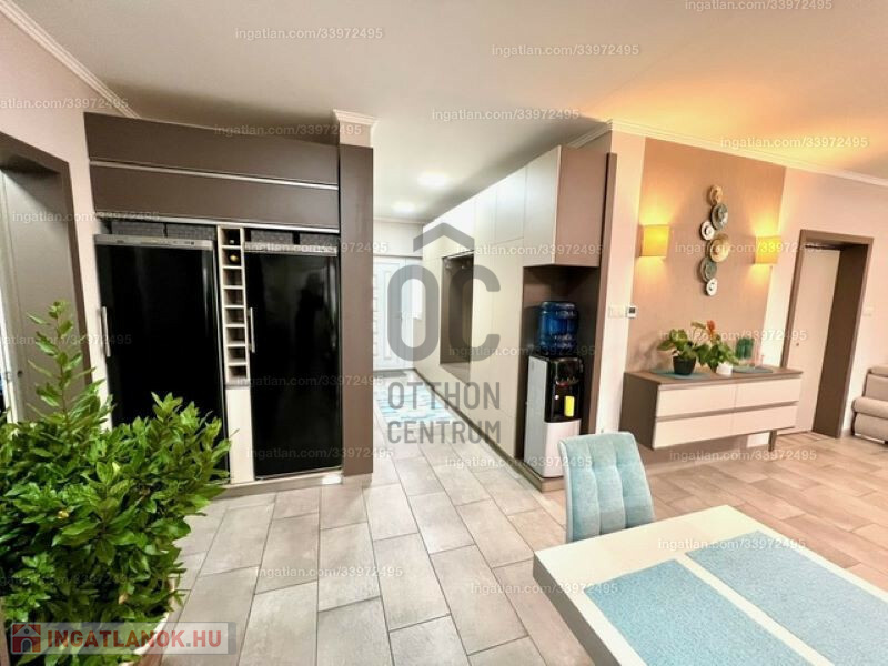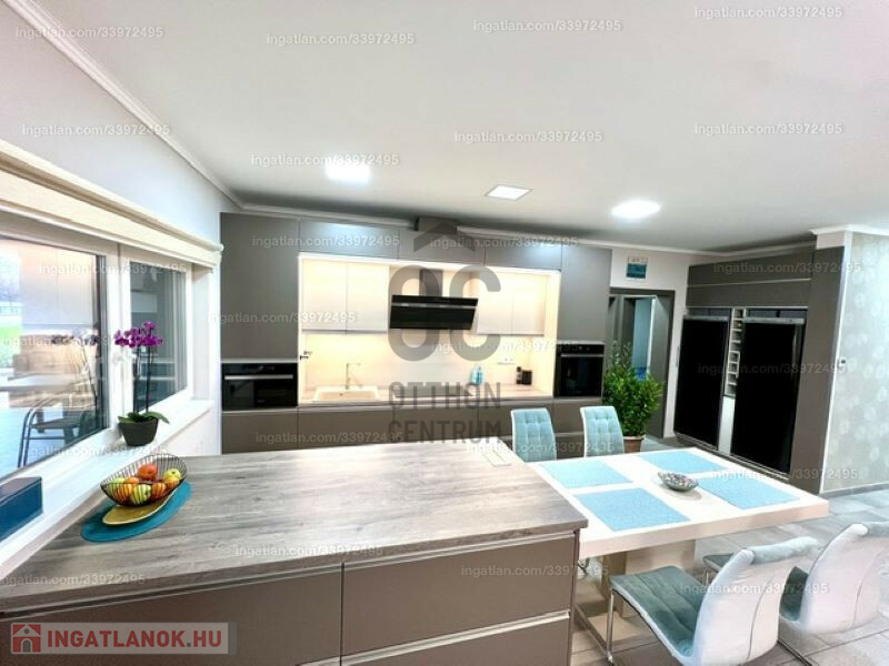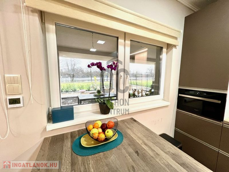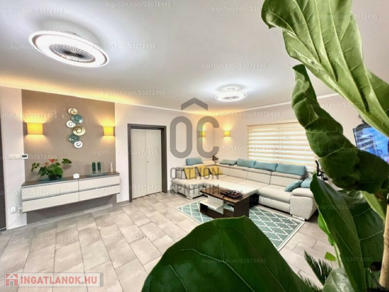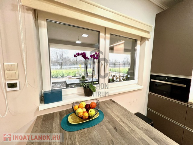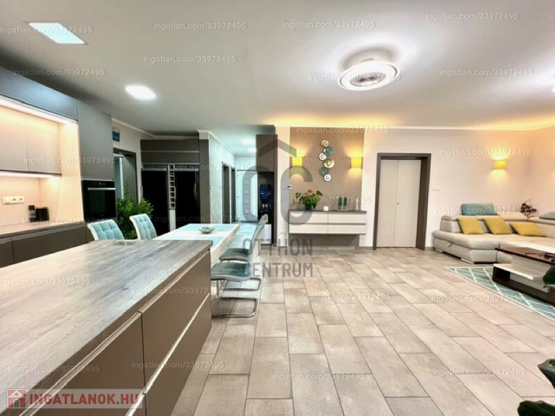 2022-ben épült, 175 nm alapterületű amerikai konyhás, nappali + 3 szoba, 2 fürdőszoba, 3 wc, gardróbszoba, tároló helyiség. Az összes szoba laminált padlós, a többi helyiség járólapos. A beépített bútorzat és gépészet a vételár részét képezi.