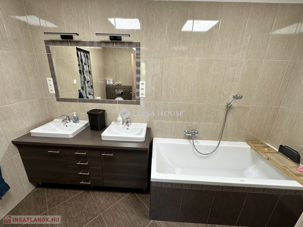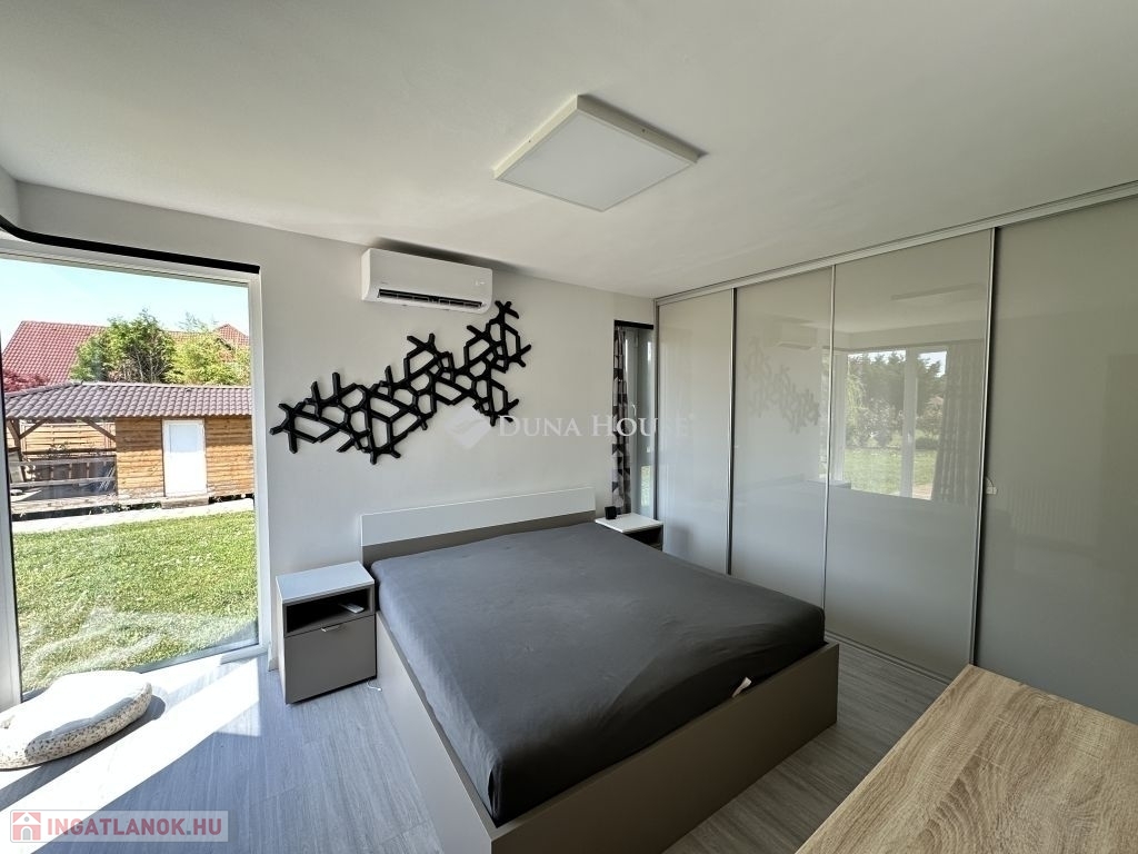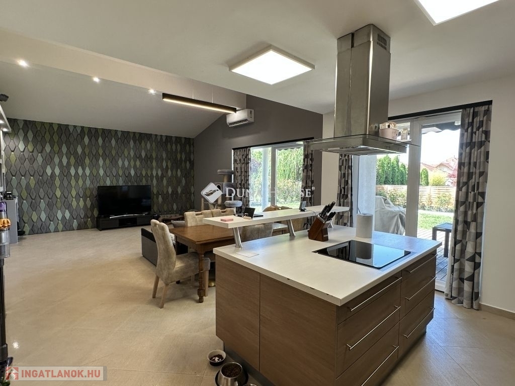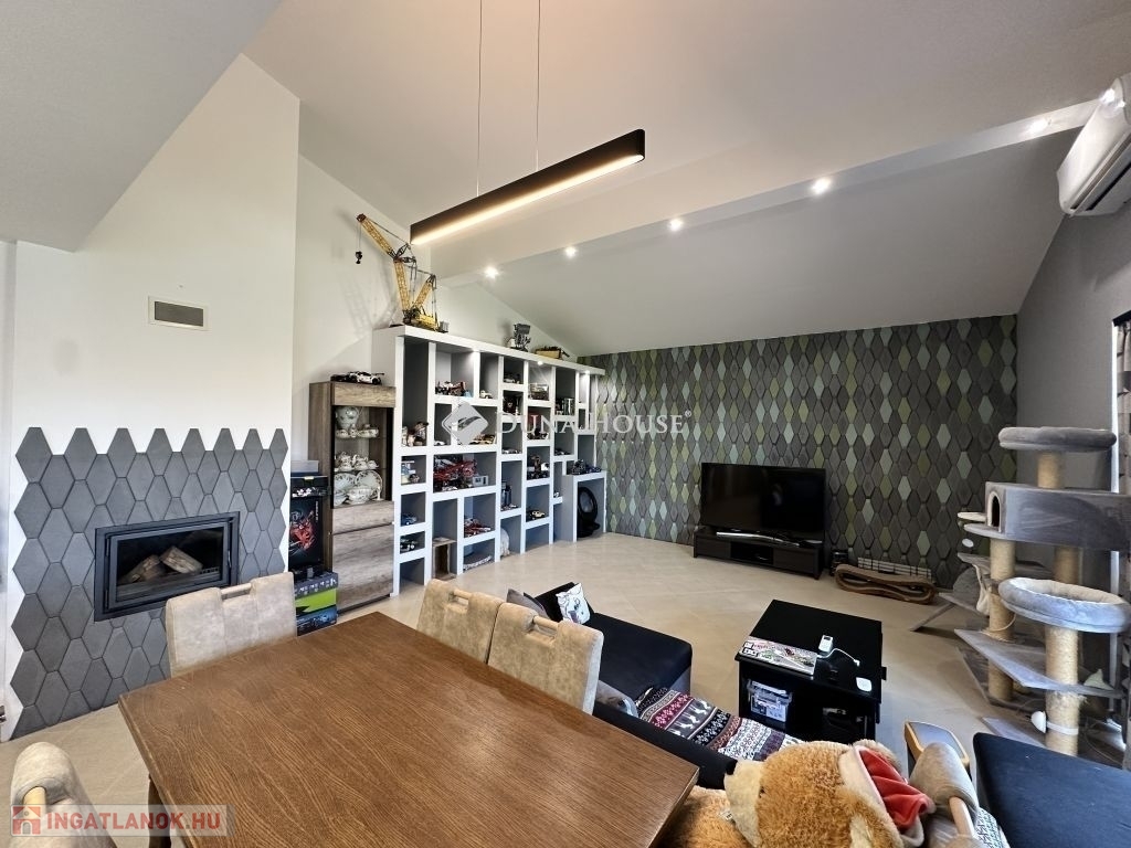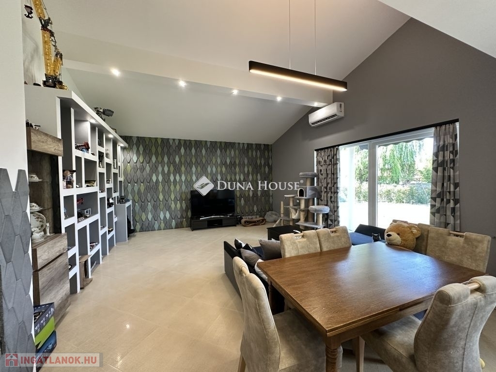 Kozármisleny északi lakótelepén, egyszintes, 3 hálószoba+nappalis, szép állapotú, napelem rendszerrel és hőszivattyús fűtéssel rendelkező családi ház eladó.A 2011-ben épült ingatlan kialakítása során nagy hangsúlyt fektettek a kellemes méretű élettér és a jól használhatóság kialakítására. A házban egy tágas amerikai stílusú konyha-nappali található, melyből közvetlenül a közel 50 m2-es teraszra léphetünk ki. Az ingatlan hátsó részében, a nappalitól kicsit távolabb, található a 3 hálószoba és a hálókhoz tartozó 2 fürdőszoba. A házban kialakításra került továbbá mosókonyha, kamra, előszoba és dupla állásos garázs is.Az 1026 m2-es telken található továbbá egy faház fedett terasszal, mely kiváló lehet edző terem kialakítására, valamint a lenti teraszt használhatjuk grillezésre is.Igény esetén az ingatlan tovább bővíthető!Bővebb információért várom hívását!