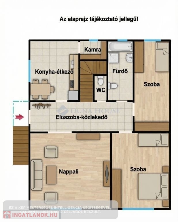 Családi ház rengeteg lehetőséggel Mágocs csendes utcájábanMágocs egyik kedvelt, csendes mellékutcájában kínálunk megvételre egy 77 m²-es iker családi házat, amely kiváló választás lehet családok számára, illetve mindazoknak, akik jól kihasználható, sok lehetőséget rejtő ingatlant keresnek.Az ingatlan jelenlegi elosztása praktikus és élhető: három szoba, előszoba, konyha étkezővel, kamra (egyben padlásfeljáró), fürdőszoba és külön WC biztosítja a kényelmes mindennapokat. A ház szuterén szintjén található a garázs, a kazánház, valamint több további helyiség, amelyek tárolásra, hobbi tevékenységre, műhelynek, vagy akár további lakótér kialakítására is alkalmasak. Az ingatlanhoz külön tárolóhelyiség is tartozik.A 496 m²-es telek ideális méretű, könnyen gondozható, mégis elegendő teret biztosít pihenésre vagy kertészkedésre. A fűtésről új gázcirkó kazán, valamint vegyes tüzelésű kazán gondoskodik, ami gazdaságos és biztonságos megoldást nyújt az egész család számára.Külön előny, hogy a bútorok nagy része a vételár részét képezi.Nyugodt környezetben elhelyezkedő, jól kihasználható családi ház Mágocson, amely számos lehetőséget kínál új tulajdonosának.