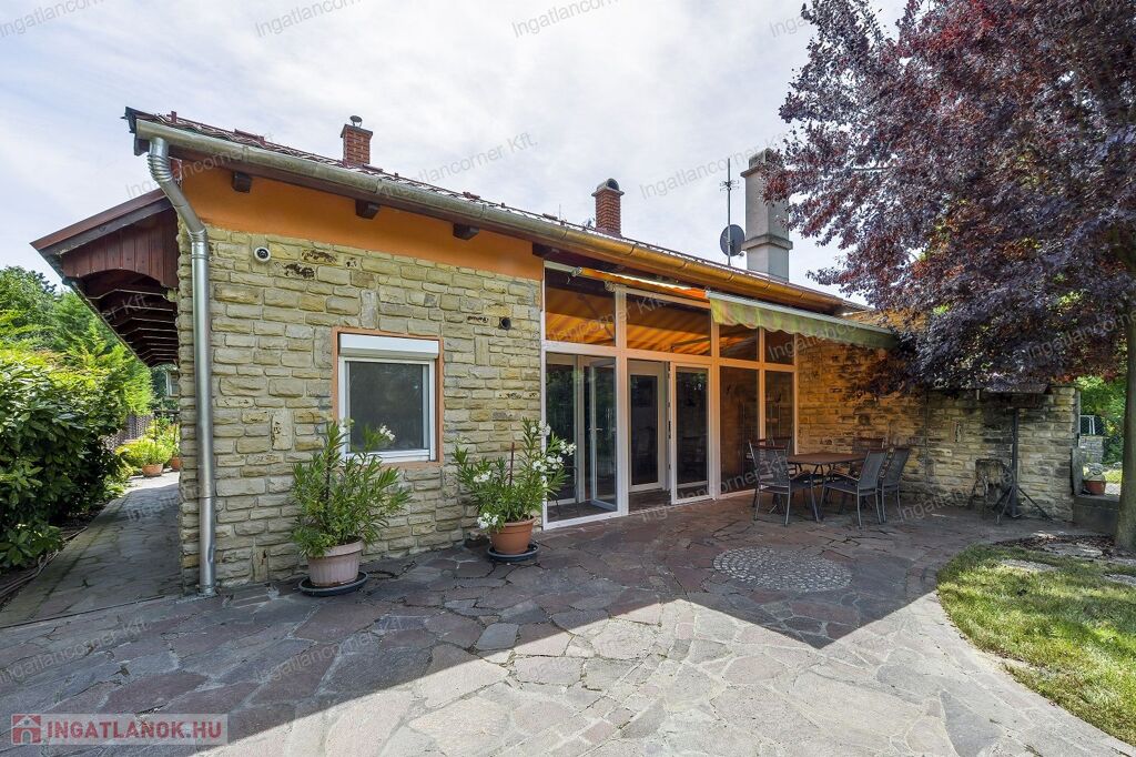 Az udvaron a medence mellett tovább haladva érkezünk a galériás főépületbe. A terméskővel kirakott homlokzatú főépületben fürdő, külön Wc, háló, nappali, étkező, konyha és a nappaliból elérhető tágas galéria kapott helyet. Az épületen átsétálva, a telek Duna parti része gyönyörűen parkosított, szalonnasütővel és díszburkolattal tarkított valamint vakond-hálóval ellátott. A kertben lett kialakítva a 45 m2-es borpince lejárója is, ami kivételes hangulatúvá teszi az egész kertet.