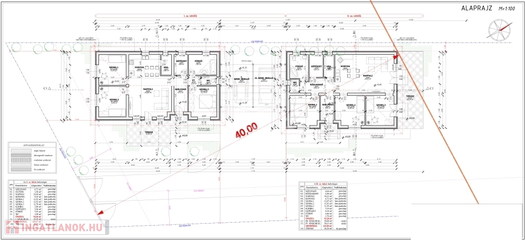 Mendén a Bercsényi utca 14 szám alatt, 1050 m²-es telken épülő 2db nettó 92,56 m²-es és 93,28 m²-es + 40-40 m² fedett gépkocsibeállós, amerikai konyhás nappali + 3 szobás cseréptetős, családi ház eladó!.