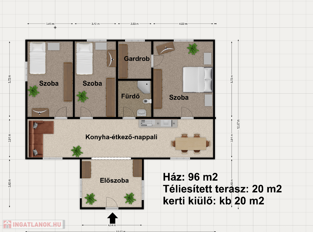 - Az épület mellett található egy 20 m2-es, ponyvával zárható, kerti kiülő, ami télen is használható