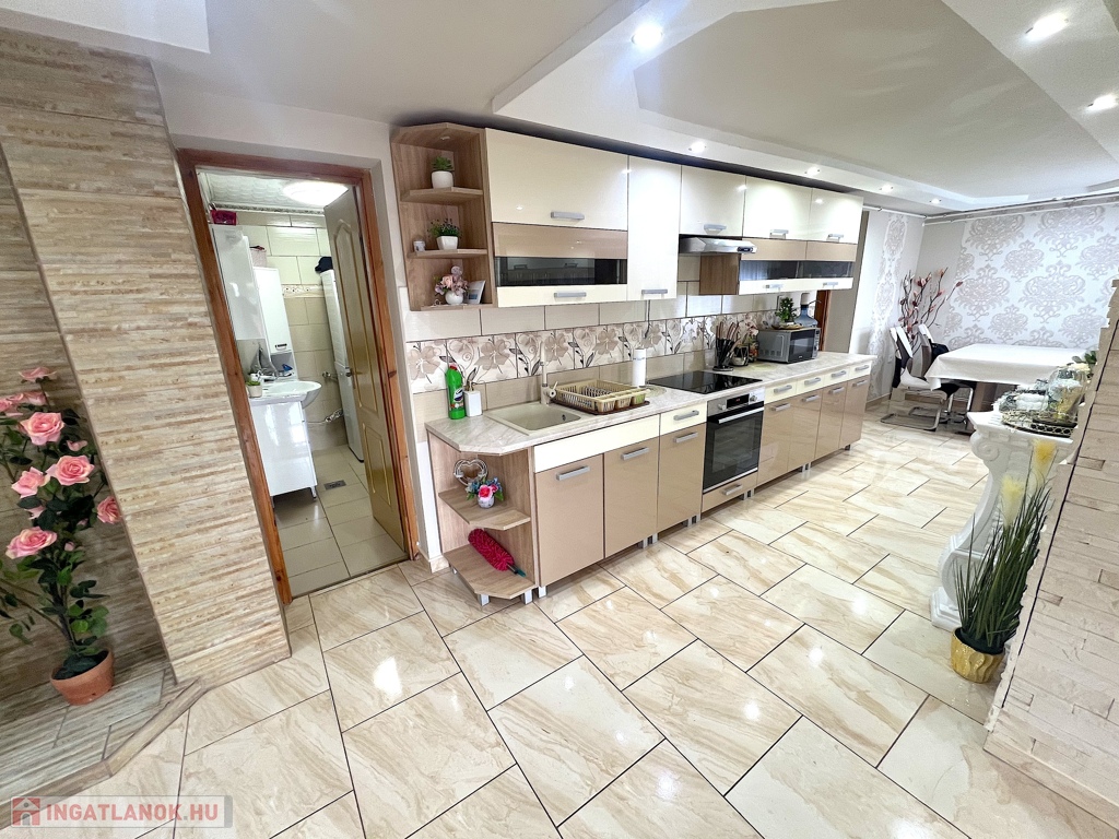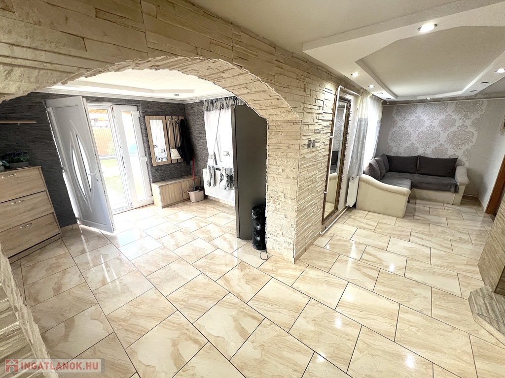 Mezőtúron, a Pétery Károly úton eladó egy 96 m2-es, 4 szobás, földszintes családi ház. Az ingatlan 2020 óta teljes külső és belső műszaki, gépészeti és esztétikai felújításon esett át.