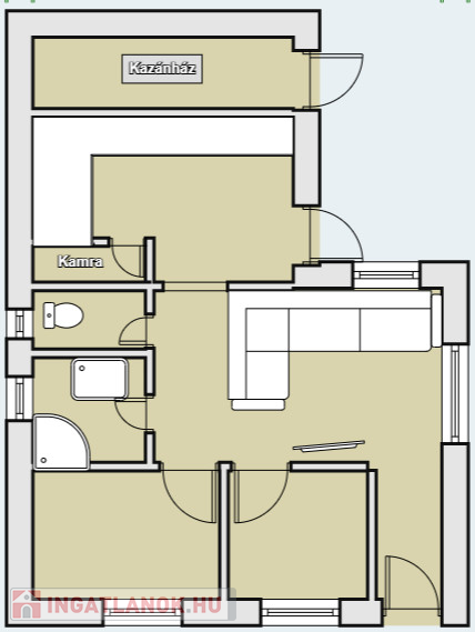 A belső térben, nagy nappali , konyha ebédlővel ,  két tágas lakószoba, külön WC,a füdőben  épített zuhany és sarok kád is rendelkezésre áll.