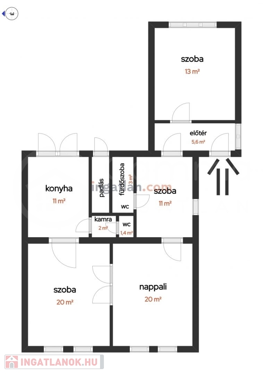 - 2 nagyméretű, egybenyíló szoba, 2 további, normál méretű szoba.