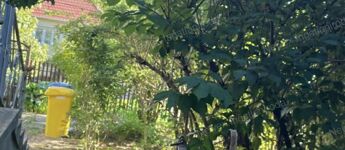 Előkertje virágos, hátsó kertje gyümölcsfákkal, bokrokkal és árnyékot adó tűlevelűekkel beültetett.