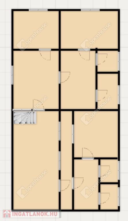 - főépületben: közlekedő-társalgó, két kényelmes méretű külön nyíló szoba, konyha, fürdőszoba, kamra