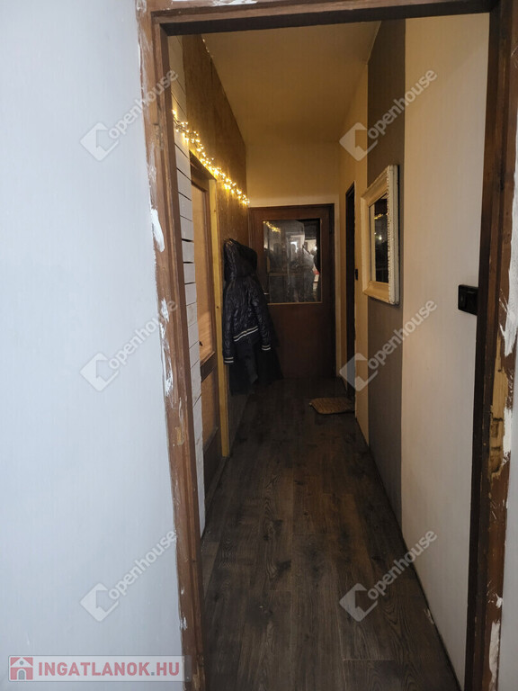 A nappaliból egy folyosóra jutunk, ahonnan két külön nyíló szoba, egy külön WC, valamint a lépcsőház érhető el, amely az emeletre vezet.