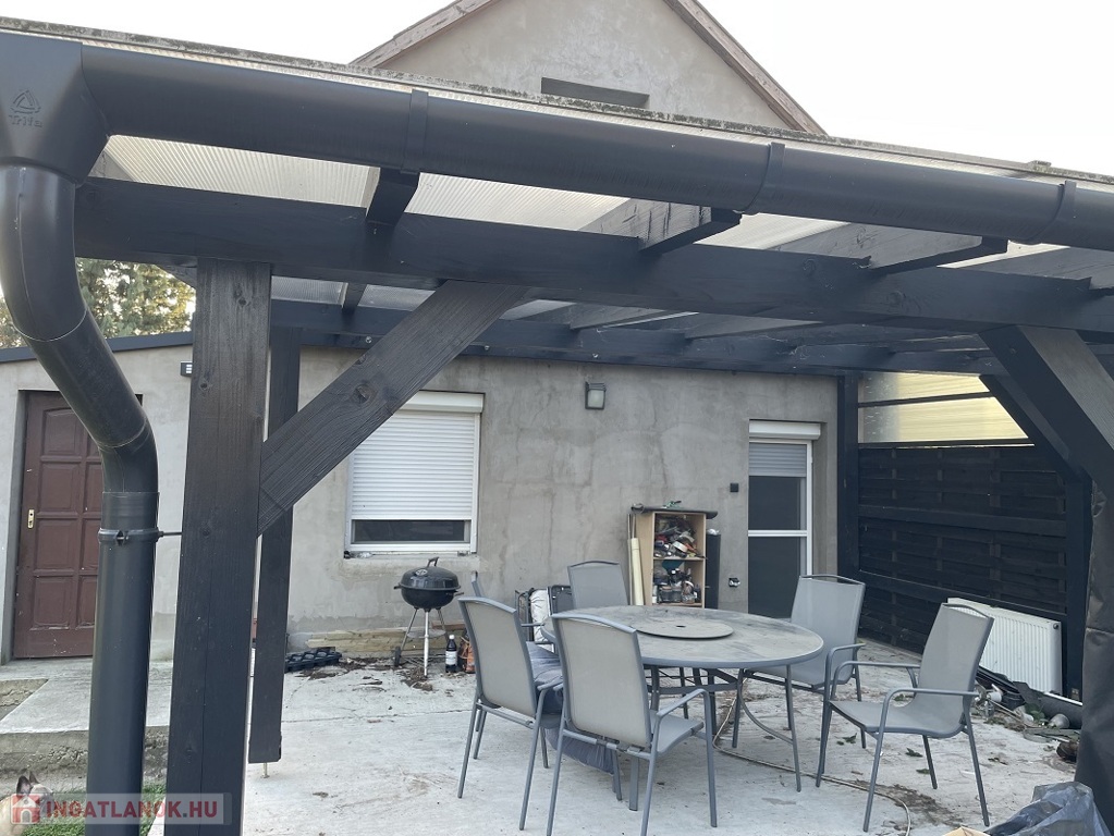 Az ingatlan lakóterülete 70 m2, melyben előtér, konyha, 3 szoba, fürdőszoba és WC található, valamint hátul egy 36 m2-es, fedett teraszt készítettek.