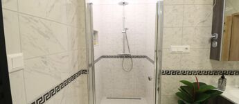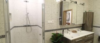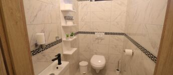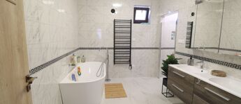 - Fürdőben térben álló kád és épített tusoló is helyet kapott.