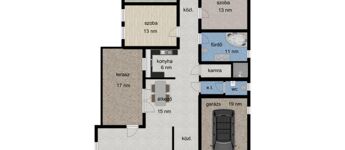 - Nappali,konyha,étkező,3 db hálószoba,fürdő,WC,kamra.közlekedő.