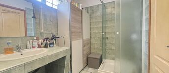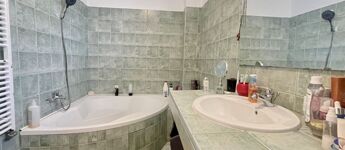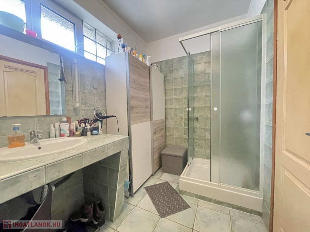A földszinti fürdő zuhanyzóval, az emeleti káddal felszerelt.