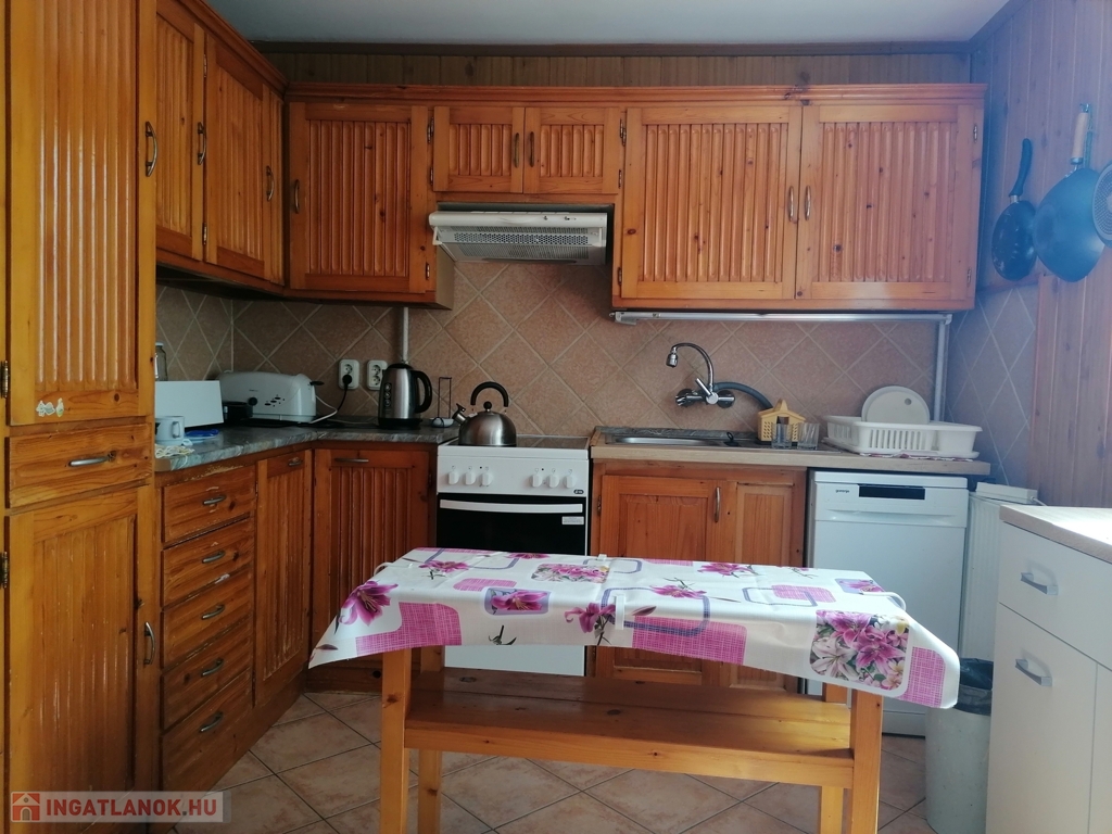 A konyha tágas, világos, az ablaka az udvarra néz, itt egy klíma is van felszerelve.