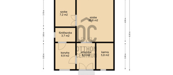 - 2 szoba, konyha, fürdőszoba, előszoba és kamra helyiségekkel rendelkezik. Elrendezése könnyen változtatható. Átalakítással akár a felette lévő tetőtér is beépíthető.