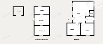 Főépületben nappali plusz 2 nagy szoba található, a lakható melléképületben egy szoba, konyha, fürdőszoba került kialakításra.