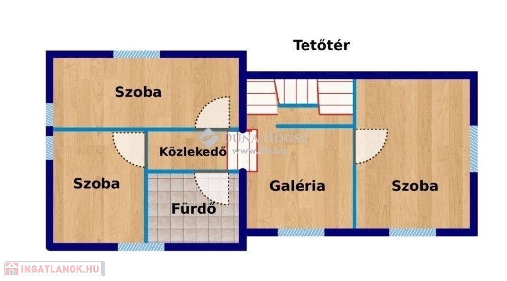 Emelet - 3 db hálószoba, gardróbszoba, fürdőszoba, galéria. Nagyméretű padlás.