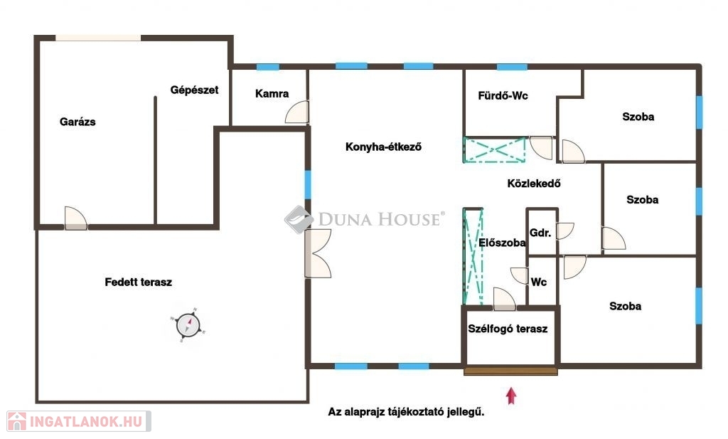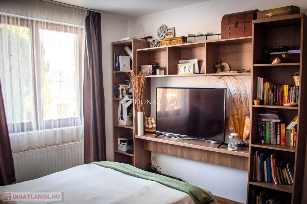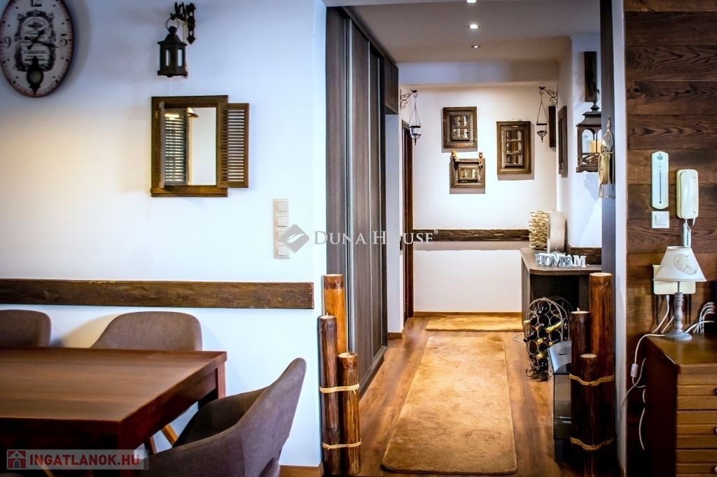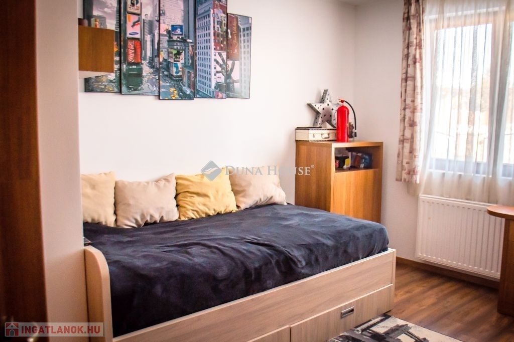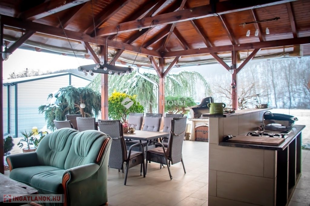 Zalagerszegtől 8 percre, Nagypáliban eladó ez a 2013-ban épült családi otthon 868m2-es saroktelken.A modern építészeti technológia mellett a belső stílusra a rusztikus báj, anyaghasználatára a természetes anyagok alkalmazása jellemző, fa, kő, tégla. A lényeg a kényelem, ahová egyszerűen csak jó hazamenni.A lakótér 109,5m2, melyben egy tágas nappali-konyha-étkező és 3 külön nyíló hálószoba kapott helyet. A fürdőszobában kád és zuhanyzó is beépítésre került. A pakolást egy gardróbhelyiség és a konyhából nyíló kamra segíti.A D-Ny-i tájolású nappaliból jutunk ki a hatalmas fedett teraszra és a kertbe, ahol az öntözőrendszer segítségével könnyedén gondozhatjuk a növényeket. A terasz mérete ideális nagyobb családi vagy baráti társaságok fogadására is, melyet akár hűvösebb időben is használni lehet, mivel oldalai lezárhatók fóliával.A parkolás akár több autóval is megoldott a garázson kívül is.Műszaki adatai:-2013-ban épült-Falazata 35x100x25 cm Thermo-Block rendszer-A külső és belső nyílászárók fából készültek-A telek 868m2-Alapterület 109,5m2 lakótér + 32,5 garázs + 58,87m2 fedett terasz-A tetőn elhelyezett 6,1KWh napelem biztosítja a folyamatos áramellátást (Havonta átlagosan 700-900 kWh-t termelhet, az évszaktól függően.)-A fűtést egy elektromos kazán biztosítja, mely a napelemre van kötve. Hőleadás radiátorokon keresztül.-A garázsban elhelyezett 120l-es Wi-fis Ariston bojler adja a melegvizetAz ingatlannak rendkívül alacsony a fenntartási költsége. Gáz nincs az épületben, de ráköthető igény esetén, a napelem szinte az egész ház áramellátását biztosítja, a víz pedig fogyasztás alapján fizetendő. A környék csendes, biztonságos családiházas övezet. Nagypáli Zalaegerszegről 8 perc alatt könnyedén elérhető, így a reggeli munkába/iskolába járás nem lehet gond. Ha felkeltette érdeklődését az ingatlan és megtekinteni személyesen is, kérem keressen elérhetőségeimen időpnt egyeztetés miatt.Hitelügyintéző kollégánk díjmentesen navigálja ügyfeleinket a döntéstől a vásárlásig.