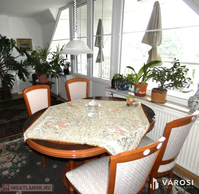 • Tetőtér: Tágas nappali, négy szoba, fürdőszoba, konyha, 12 m²-es erkély gyönyörű kilátással a Szent György-hegyre.