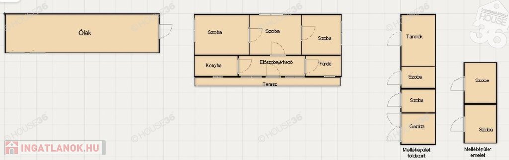 -melléképületben tároló + 4 szoba kialakítva