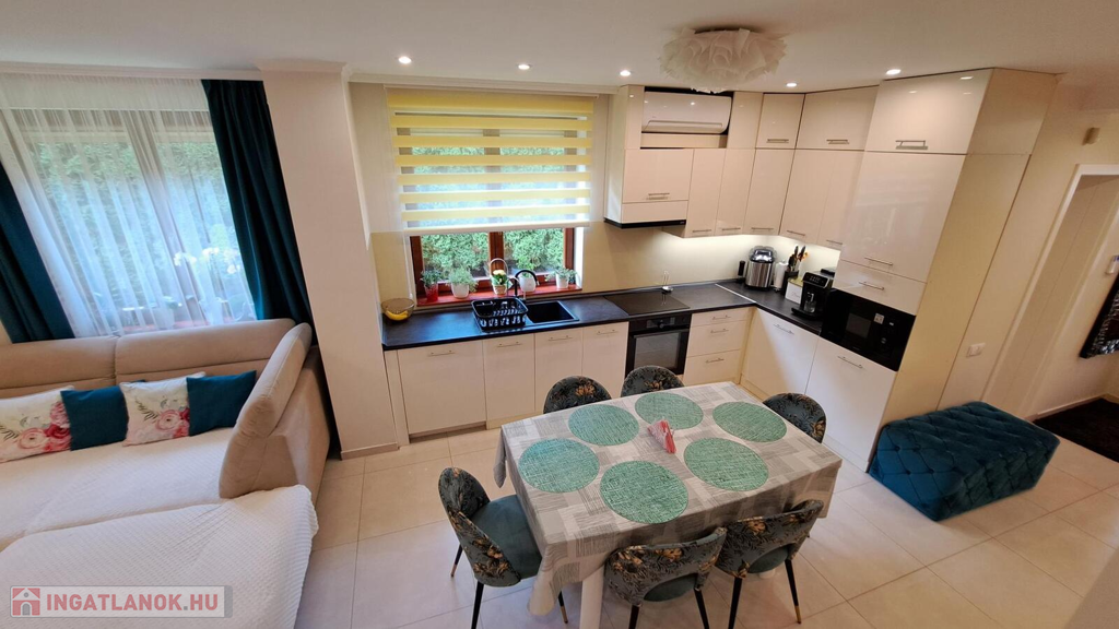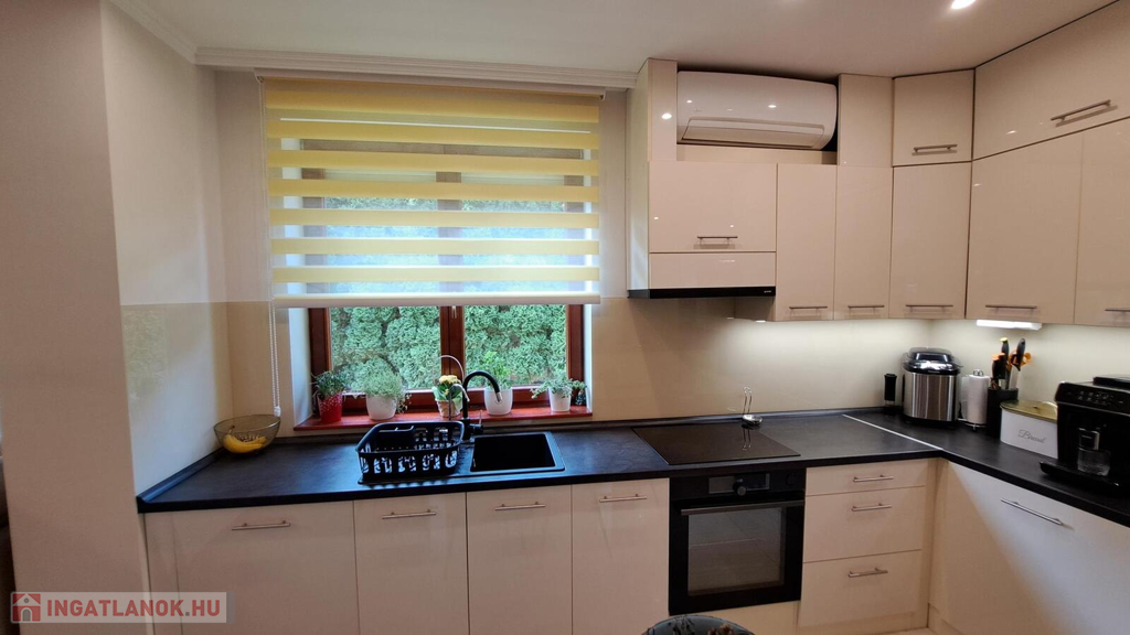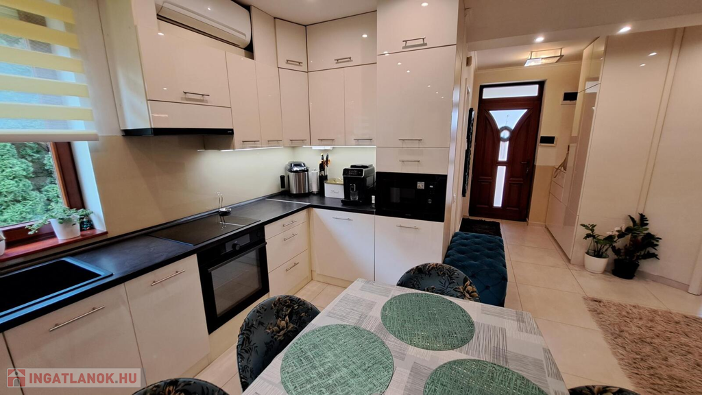 Konyha: egyedi tervezésű, beépített és gépesített konyhabútor (a gépek a vételár részét képezik)