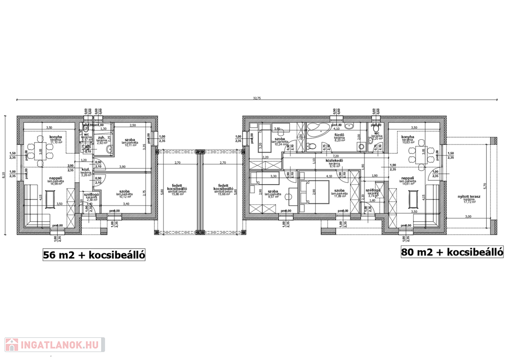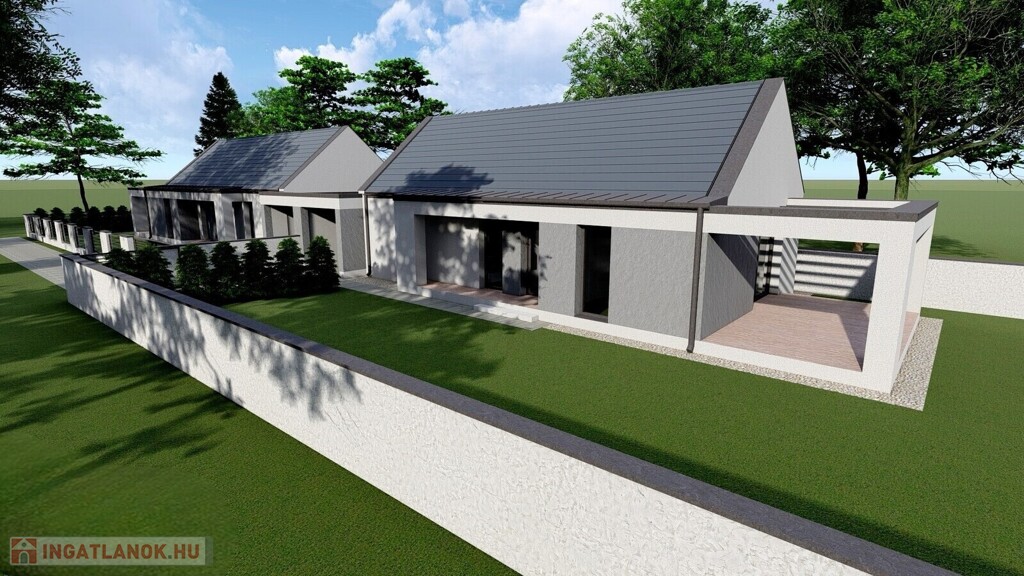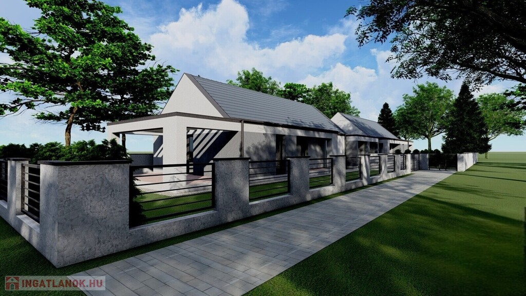 Nyíregyháza Oroson 2026 nyári átadással eladásra kínálunk garázsok mentén összeépített családi ikerházat.