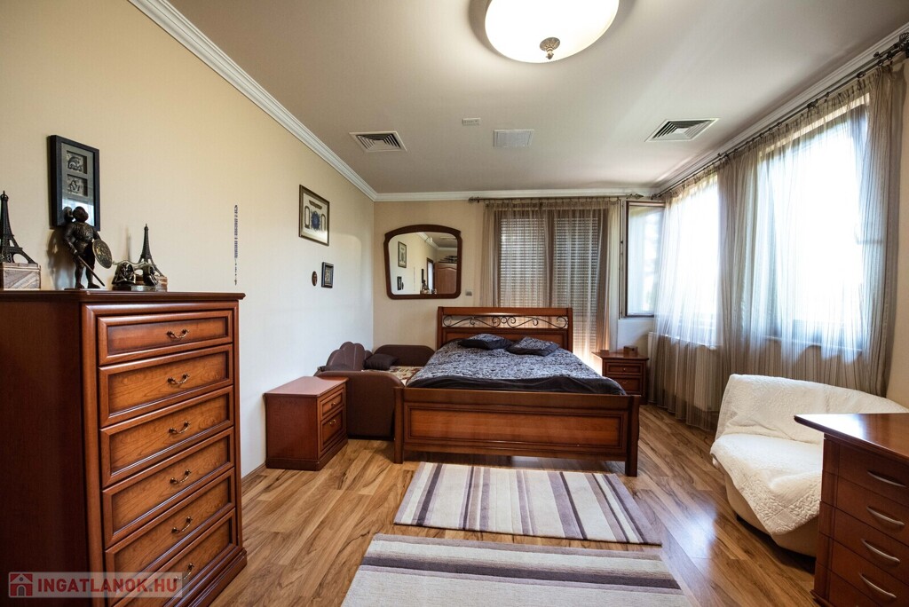 Felső szint: 3 hálószoba, fürdőszoba WC-vel, valamint külön gardróbszoba