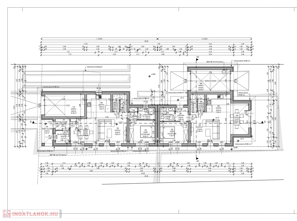 Nyíregyháza Nyírszőlős frekventált övezetében, ÚJ ÉPÍTÉSŰ 111 nm-es, 3 szoba +nappali étkező konyha egy légtérben, 2 fürdő és 2 wc-vel, választható járólap és laminált parketta burkolattal, 3 réteg üvegezésű műanyag nyílászárókkal, egyedi gáz padló fűtéssel kondenzációs gázkazánnal, 2 db inverteres hűtő-fűtő klímával, szintes ikerház, 400 nm-es telken, 16 nm-es garázzsal, épített kerítéssel, nyári átadással eladó. Az ingatlan 15cm-es homlokzati, 30 cm-es födém és 10 cm-es aljzat szigeteléssel lesz ellátva. Földszinten található: nappali étkező konyhával teraszkapcsolattal, 1 hálószoba, zuhanyzó wc-vel, 16 nm-es garázs. Emeleten: 2 hálószoba, fürdő wc-vel.Az ingatlan azonosítója: 99537Érdeklődni: +36702560693 Az ingatlan azonosítója: 99537 Érdeklődni: +36702560693