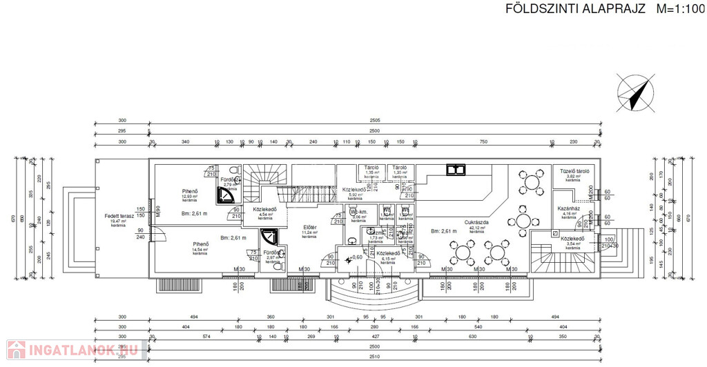 Nyíregyháza, Sóstóhegyen eladó 170 m2-s, öt szobás, kettő nappalis, négy fürdőszobás, két külön wc, kamra, műanyag nyílászárós, egyedi gáz és vegyes fűtésű, riasztóval felszerelt, 5 hűtő klímás, 30-s porotherm téglából épült, külsőleg 5 cm szigetelés borított, beton födémes rajta 40 cm salakgyapot szigetelés, dupla fedésű bramac betoncseréppel fedett jó állapotú szintes családi ház a hozzá tartozó 30 m2-s fedett, burkolt terasszal. Az ingatlan alatt teljes pince található mely burkolt és több fajta vállalkozásra alkalmas az 1250 m2-s zárt telken kiépített öntözőrendszer, fúrott kút, térkövezett nagy parkoló és két állásos garázs található.