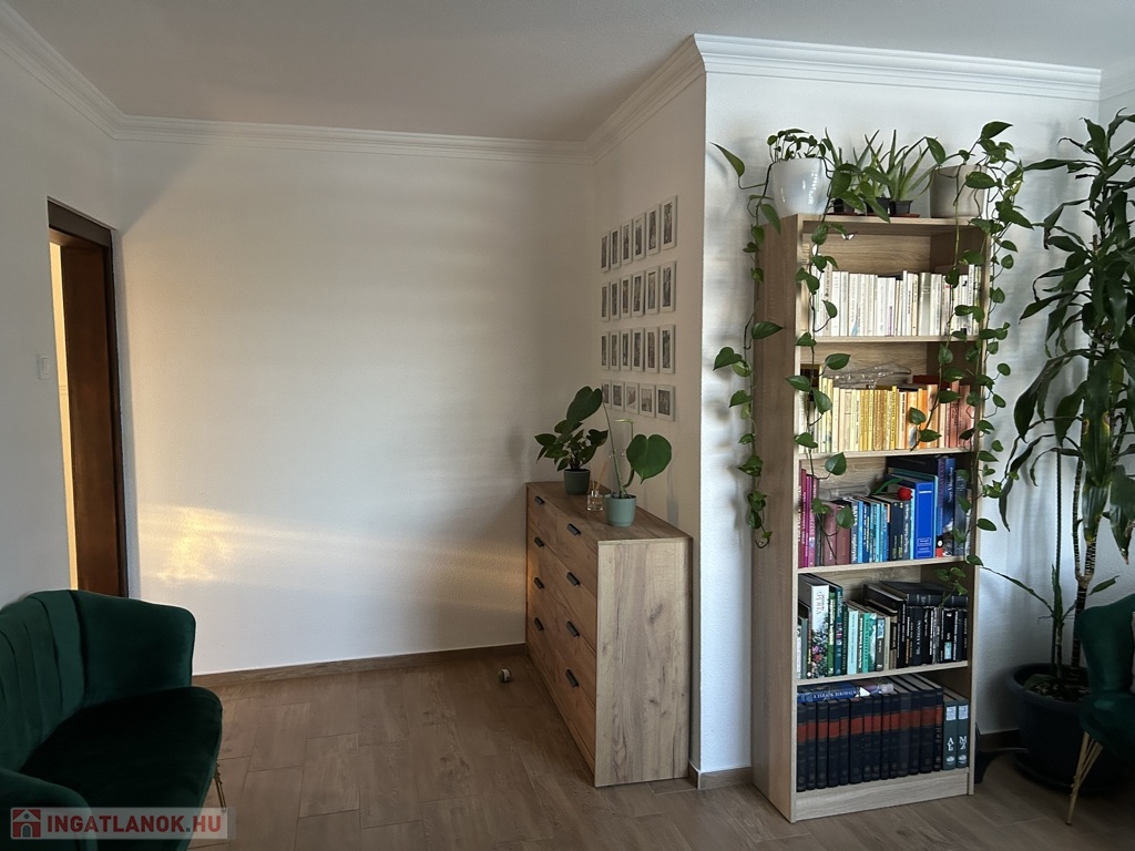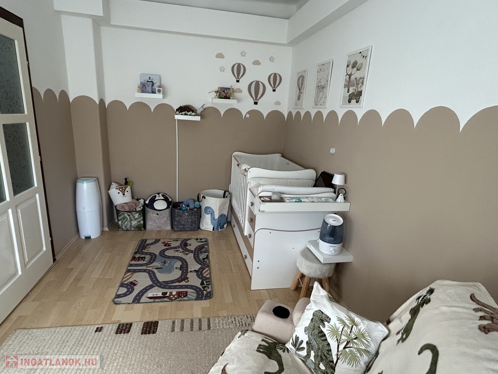 A jelenlegi elrendezés Nappali + 2 szobás, azonban kis ráfordítással három teljes értékű szoba is kialakítható. A 21 nm-es nappali világos és tágas életteret biztosít, a 18 nm-es konyha-étkező új, egyedi tervezésű, minőségi konyhabútorral felszerelt, garanciális gépekkel. A 12 nm-es társalgó kellemes, külön élettérként funkcionálhat. A hálószobák 12 és 16 nm-esek, a fürdőszoba kényelmes, 8 nm alapterületű, az előszoba 5 nm. 15 nm fedett terasz.