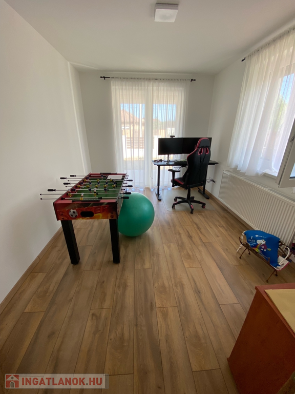 A ház építésekor szempont volt a megfelelő minőségű építőanyagok, burkolatok, szaniterek kiválasztása és beépítése. Az ingatlanhoz közvetlen bejárattal kapcsolódik még egy elektromos garázskapuval felszerelt, járólappal burkolt kétállásos garázs. A 900 nm-es telek egy része parkosított, amely fúrt kútról működő öntözőrendszerrel felszerelt.