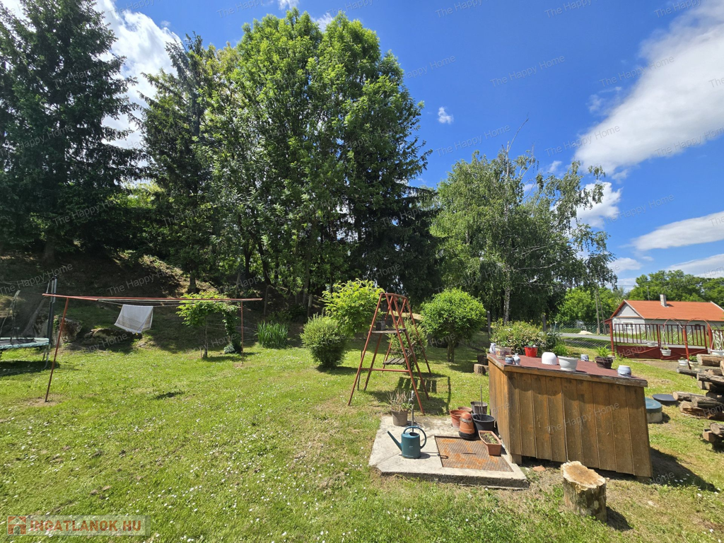 Kertben hinta, pihenésre és kiskert kialakítására alkalmas udvar