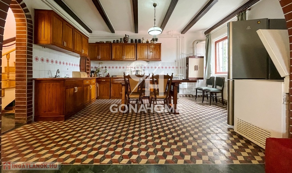 * Főépület: kétszintes, bruttó 320 m², 5 szoba + 2 nappali + étkező-konyha, 2 fürdőszoba, 2 külön WC, gardrób, erkély, részben alápincézett
