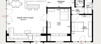 A ház két részletben épült. Az alap épület, amerikai konyhás nappali, szoba, volt. Bővítés után a meglévő épületrészt kiszélesítették, és hátrafelé külön WC, kádas fürdőszoba és egy szoba lett hozzá építve.