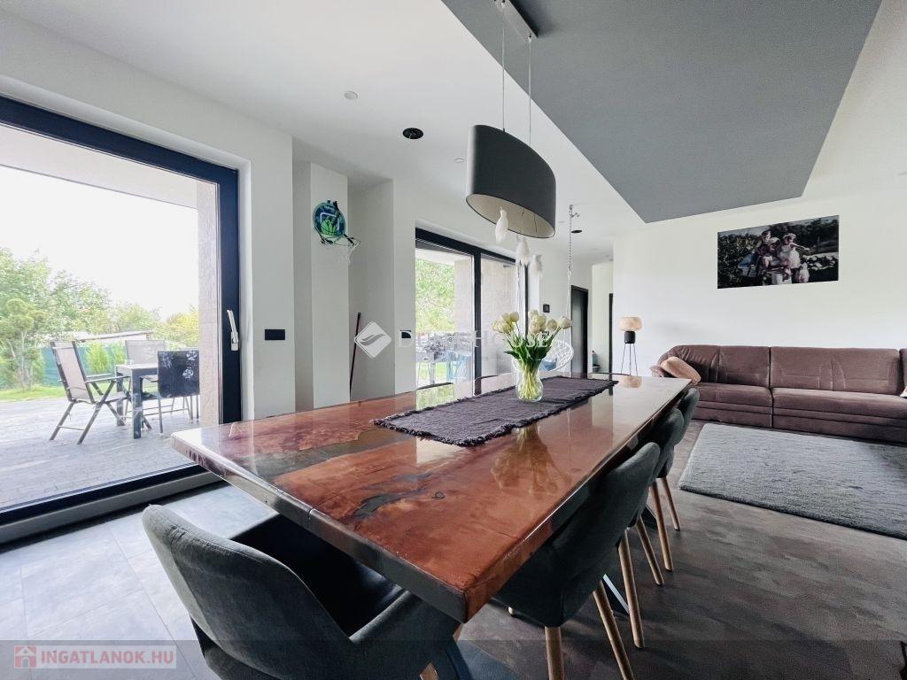 Eladó okos ház Pécsen2020-ban épült, OKOSHÁZ, prémium felszereltséggel!Pécs belvárosától mindössze 10 perc távolságra eladó egy modern, 2020-ban épült, okos funkciókkal felszerelt családi ház.Az ingatlan közel 1600 m²-es, teljesen körbekerített telken fekszik, amelyről csodálatos panoráma nyílik a környékre.A ház elosztása:4 hálószoba, melyek közül az egyik saját fürdőszobával rendelkezikTovábbá 1 különálló fürdőszoba WC-vel, egy külön WC és egy praktikus kamraÓriási amerikai konyha - nappali, amely közösségi élet központja.A konyha minőségi gépekkel van felszerelve.Műszaki jellemzők:Hőszivattyús fűtési rendszer, valamint beépített klímák gondoskodnak az otthon kényelméről.30-as Porotherm téglából épült, 20 cm-es grafit hőszigetelésselOkos szellőztető rendszer és villany- és redőnyvezérlés, amely okostelefonról működtethetőRiasztó- és kamerarendszer lett kiépítve, H tarifa és 3x25 A áramellátás rendelkezésre áll.Az házba központi vízlágyítót szereltek be.Az ingatlanhoz tartozik egy két autó beállásos garázs, valamint egy irodahelyiség.Az udvaron fedett terasz, egy hangulatos filagória. AMELYBEN kültéri konyha grillezővel és dézsával lett kialakítva.Gyerekeknek játszótér, továbbá teljes panorámás kilátás. Mecsekre.A kertet öntözőrendszer látja el.Ez a ház tökéletes választás mindazok számára, akik modern, kényelmes és okos megoldásokat keresnek egy gyönyörű helyen. Ne hagyja ki ezt a különleges lehetőséget!