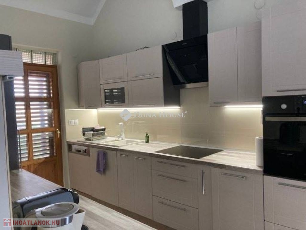Extrák:- teljes lakás hűtő-fűtő klímával ellátott, melyek interneten keresztül távolról is működtethetők, - H óra a kedvezményes téli áramhasználathoz- 3 fázis, - Kialakított borospince, - Tárolóhelyiségek, - A kert lépcsős kialakítású. - Modern, letisztult arculat. A felújítás során nemcsak a külső hőszigetelés és színezés valósult meg, hanem belül is prémium anyagokkal dolgoztak.