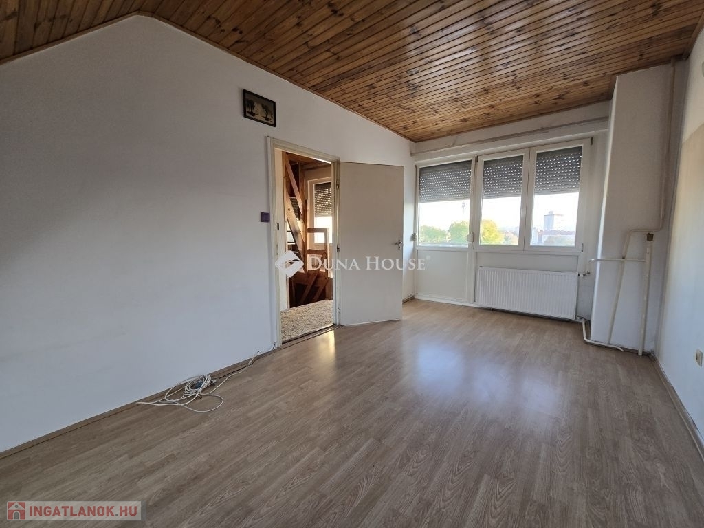 cs közkedvelt egyetemi városrészében, a Tiborc utcában eladó egy 150 m²-es, belső háromszintes ikerházfél, amely tulajdoni lap szerint lakásként szerepel, mégis családi házas kényelmet nyújt.Az ingatlan 519 m²-es telken helyezkedik el,ahol pince, melléképület, valamint kertkapcsolat is biztosított. Az épület szerkezetileg jó állapotú, műanyag nyílászárós, gázcirkóval és vegyes tüzelésű kazánnal fűthető, valamint ipari árammal ellátott.Elrendezése:Alsó szint: aknás garázs, kazánhelyiség, 3 további helyiség (szobává alakíthatók bővítés esetén)Középső szint: közlekedő, konyha-étkező, kamra, nagy nappali, fürdő + wc, erkély.Felső szint: 2 szoba, külön wc, impozáns, nagy méretű terasz, amely kiváló a pihenéshez vagy napozáshozA ház jelenleg is lakható, de a belső terek igény szerint korszerűsíthetők, így mindenki saját elképzelése szerint alakíthatja. Kiváló választás családoknak vagy befektetésnek, egyetemközeli elhelyezkedéssel.Az ingatlan tehermentes és gyorsan költözhető!