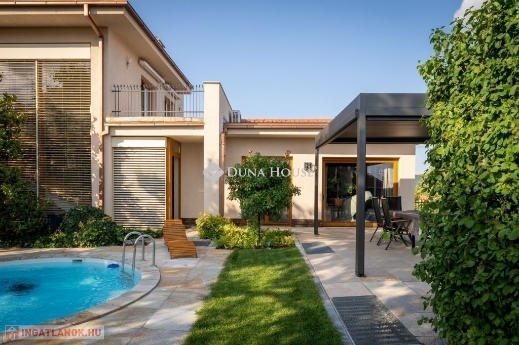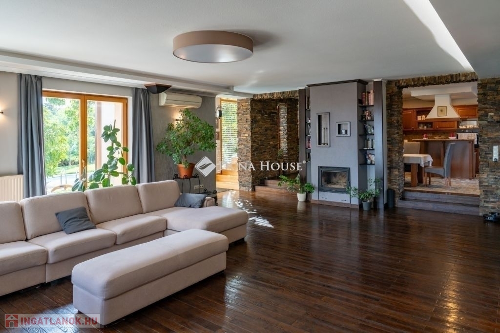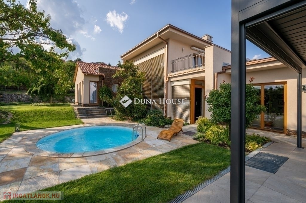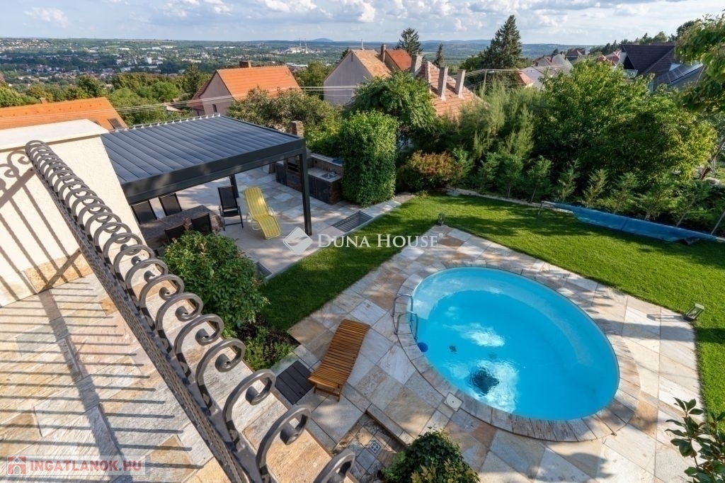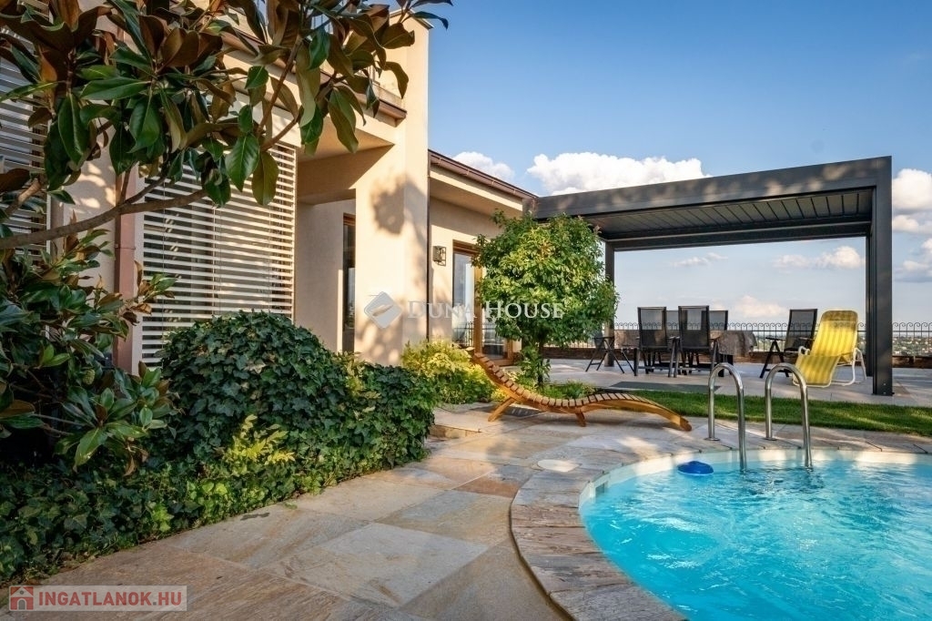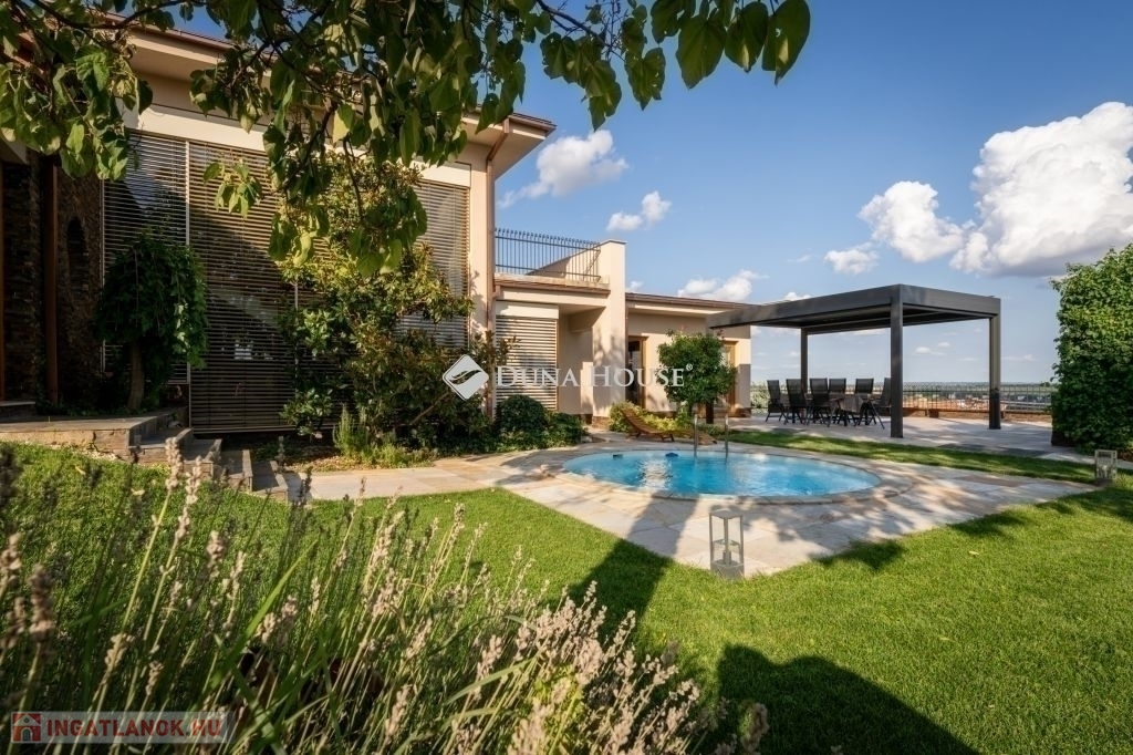 Eladó egy ritka gyöngyszem ingatlan, mely 2000 m2-es telken lévő családi otthon, 380 m² összterülettel büszkélkedhet, ideértve a fő lakóteret, amely 5 hálószobával , rendelkezik . Ezenkívül egy külön 55 m²-es lakást, egy 2 beállásos garázst, tárolókat, valamint egy több mint 100 m²-es, természetes kőburkolatú terasszal, pergolával ,parkosított kerttel, halas tóval .Legyen szó akár nagyobb családokról, akár olyanokról, akik szeretik a vendégeiket luxus körülmények között fogadni, ez az ingatlan tökéletes választás lehet. Az elszeparált lakrész lehetőséget nyújt vendégek kényelmes elszállásolására vagy akár egy nagyobb korú gyermek önálló életterének kialakítására is.Az ingatlan nem csupán a luxus szolgáltatásaival, hanem esztétikai értékeivel is kiemelkedik. A magas minőségű anyagok felhasználása és a részletekre való odafigyelés egy olyan otthont teremt, amely minden igényt kielégít. A panorámás kilátás pedig még inkább emeli az ingatlan értékét, hiszen minden napja egy festménybe illő látvánnyal kezdődhet.A kényelem és a luxus jegyében épült ingatlanban minden megtalálható, amire csak vágyhat: egy gyönyörűen kialakított medence, szauna, pezsgőfürdő, hangulatos teraszok, és természetesen a téli estéket kellemessé tevő kandalló. A napfényes terek gondoskodnak arról, hogy otthona mindig világos és meleg legyen, míg a modern klímaberendezés a nyári napokat is kellemessé teszi.Összefoglalva, ez az ingatlan nem csupán egy lakóhely, hanem egy olyan befektetés, amely értékálló marad a jövőben is. Ha Ön egy olyan otthont keres, ahol a luxus, a kényelem és a lélegzetelállító kilátás mindennapos, ne keressen tovább. Fedezze fel, mit kínál ez a különleges ingatlan és tegyen egy lépést álmai otthona felé.