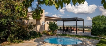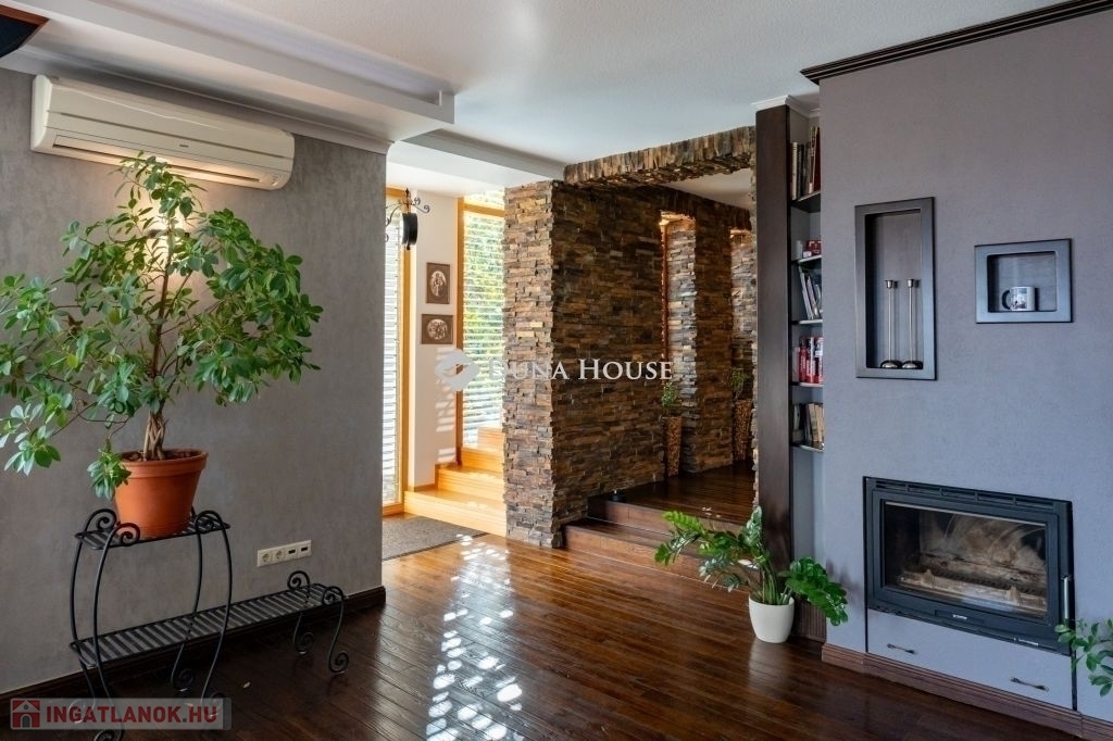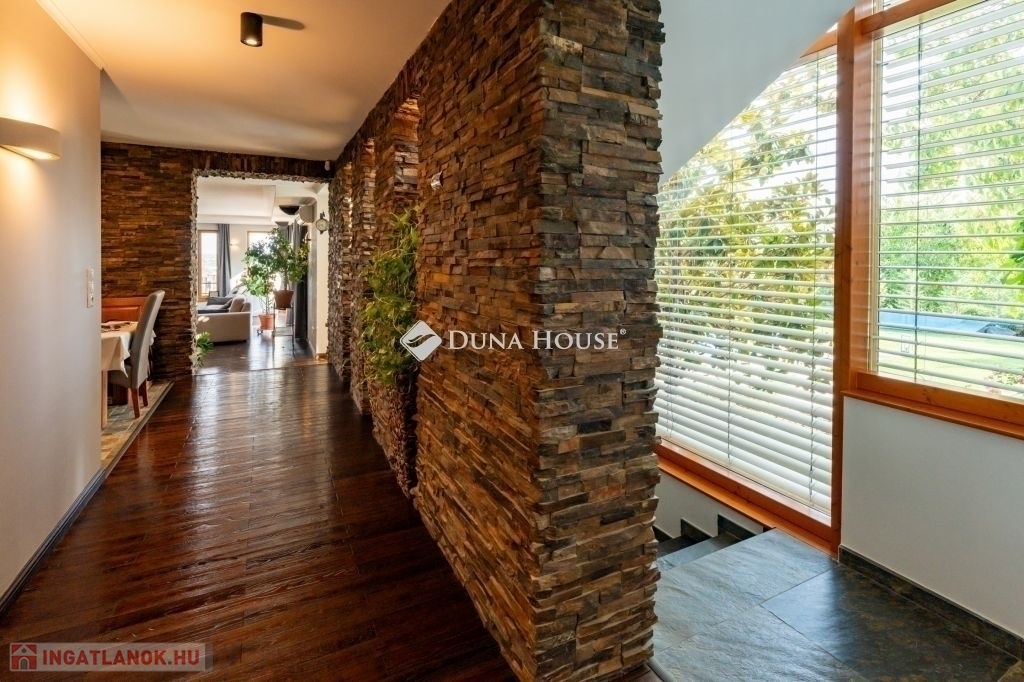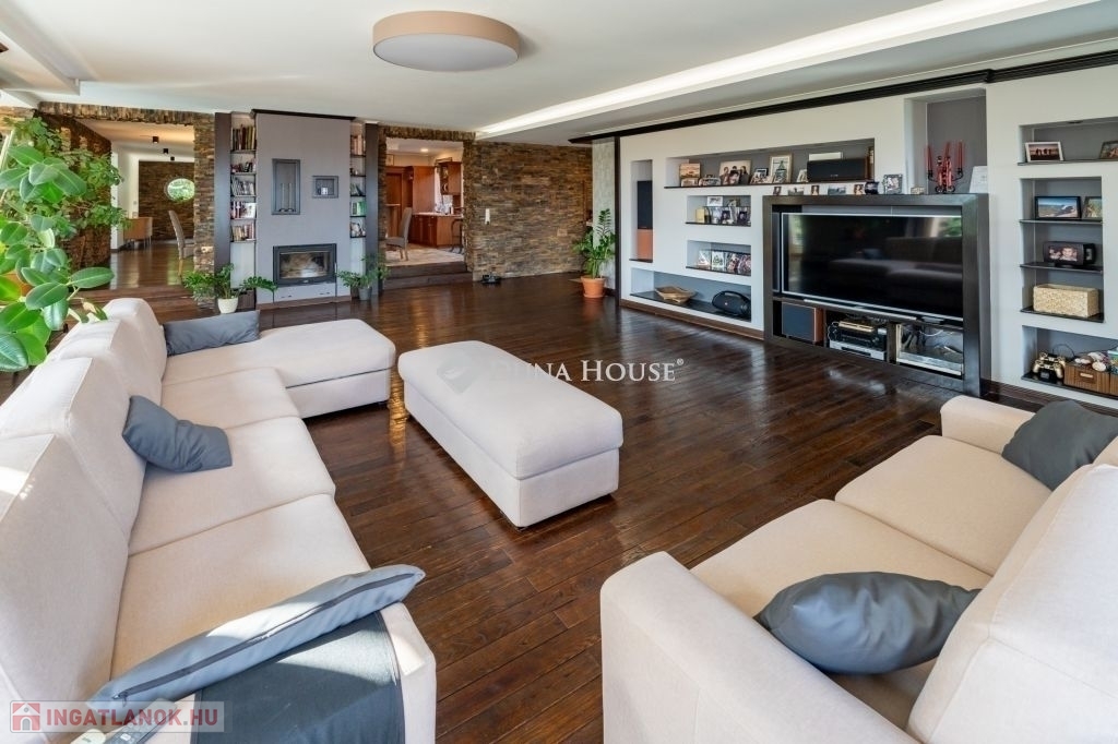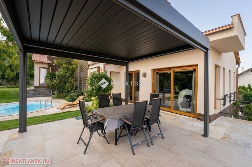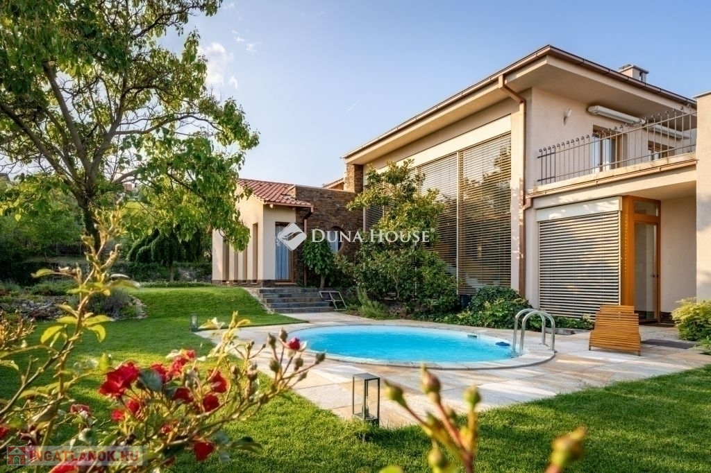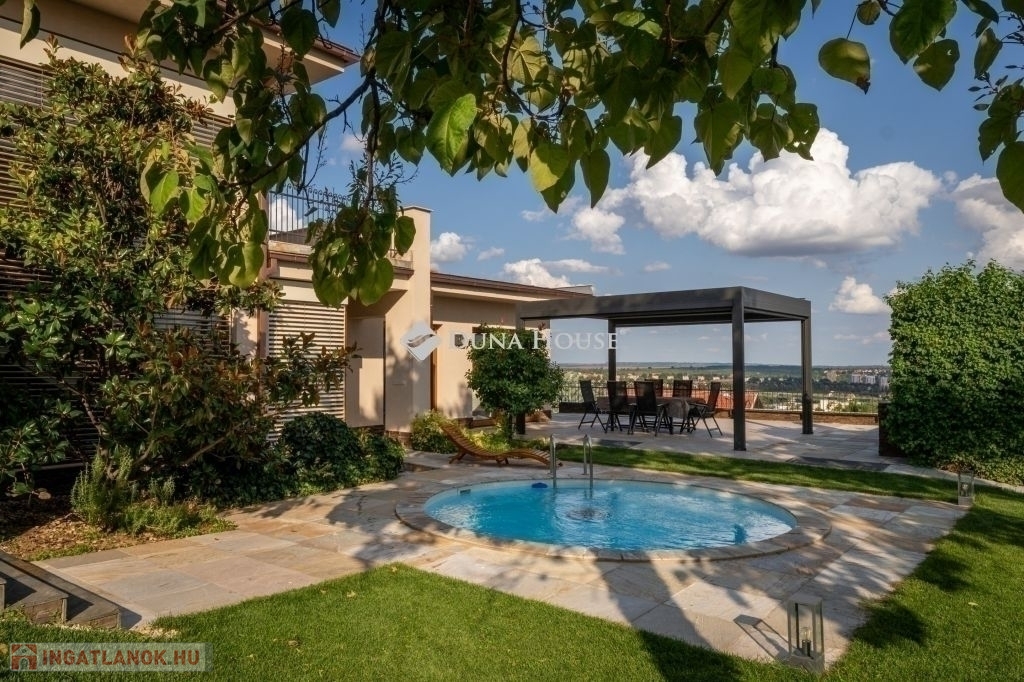 Eladó egy ritka gyöngyszem ingatlan, mely 2000 m2-es telken lévő családi otthon, 380 m² összterülettel büszkélkedhet, ideértve a fő lakóteret, amely 5 hálószobával , rendelkezik . Ezenkívül egy külön 55 m²-es lakást, egy 2 beállásos garázst, tárolókat, valamint egy több mint 100 m²-es, természetes kőburkolatú terasszal, pergolával ,parkosított kerttel, halas tóval .Legyen szó akár nagyobb családokról, akár olyanokról, akik szeretik a vendégeiket luxus körülmények között fogadni, ez az ingatlan tökéletes választás lehet. Az elszeparált lakrész lehetőséget nyújt vendégek kényelmes elszállásolására vagy akár egy nagyobb korú gyermek önálló életterének kialakítására is.Az ingatlan nem csupán a luxus szolgáltatásaival, hanem esztétikai értékeivel is kiemelkedik. A magas minőségű anyagok felhasználása és a részletekre való odafigyelés egy olyan otthont teremt, amely minden igényt kielégít. A panorámás kilátás pedig még inkább emeli az ingatlan értékét, hiszen minden napja egy festménybe illő látvánnyal kezdődhet.A kényelem és a luxus jegyében épült ingatlanban minden megtalálható, amire csak vágyhat: egy gyönyörűen kialakított medence, szauna, pezsgőfürdő, hangulatos teraszok, és természetesen a téli estéket kellemessé tevő kandalló. A napfényes terek gondoskodnak arról, hogy otthona mindig világos és meleg legyen, míg a modern klímaberendezés a nyári napokat is kellemessé teszi.Összefoglalva, ez az ingatlan nem csupán egy lakóhely, hanem egy olyan befektetés, amely értékálló marad a jövőben is. Ha Ön egy olyan otthont keres, ahol a luxus, a kényelem és a lélegzetelállító kilátás mindennapos, ne keressen tovább. Fedezze fel, mit kínál ez a különleges ingatlan és tegyen egy lépést álmai otthona felé.